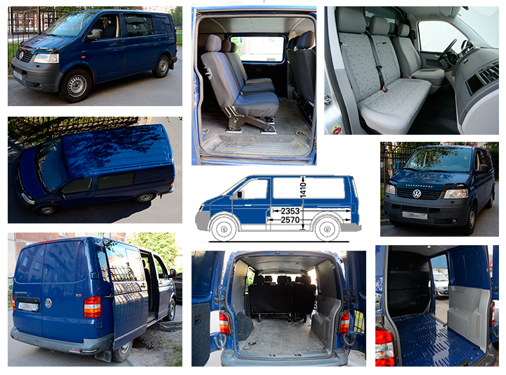 Комментарий: Микроавтобус VW Transporter T5. Грузо-пассажирские перевозки по Санкт-Петербургу и Ленинградской обл. Умеренные цены, повышенный комфорт, опытный водитель, срочность 1. Пассажирский: 5 пассажиров + грузовой отсек: длина 1.6х1.6мх1.4м 2. Грузовой: 2 пассажира + грузовой отсек: длина 2.5х1.6х1.4м. Полезный объем 5,6 м3 3. Экспресс-доставка по Санкт-Петербургу и обл., доставка техники из магазинов и со складов 4. Вывоз техники, грузов на дачу и в Лен.обл. 5. Развозка сотрудников по Санкт-Петербургу, в т.ч. ночью ****) 6. Междугороднее такси, трансферы, ж/д вокзалы, аэропорт, морской вокзал Общий Максимальный вес, включая пассажиров и водителя, до 900 кг. Перегруз не допускается.