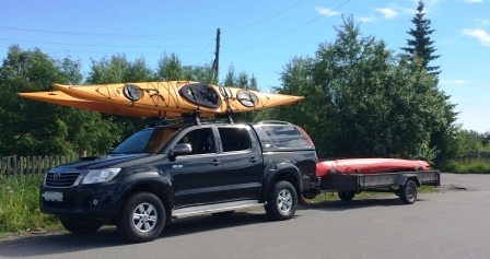 Комментарий: Тойота Хайлюкс (пикап) с кунгом! Верхний багажник позволяет разместить груз до 5-ти м. длиной и массой до 80 кг.
